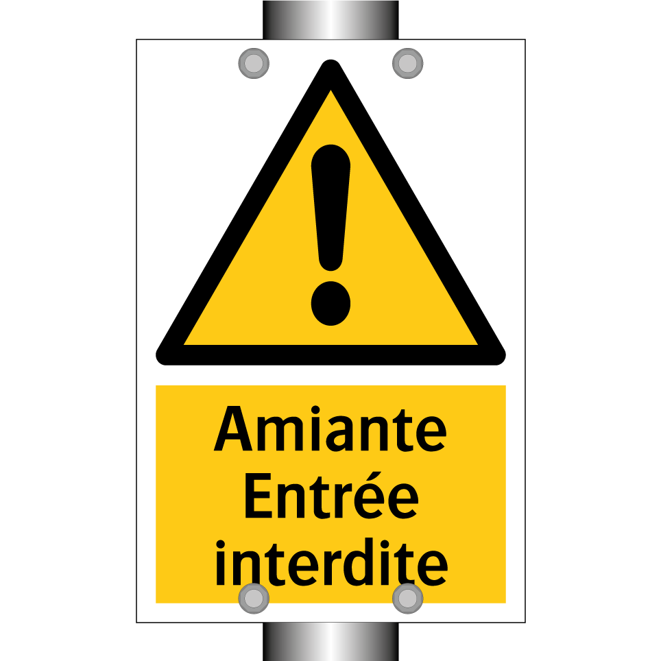 Panneau d'avertissement avec le texte : "Amiante Entrée interdite"