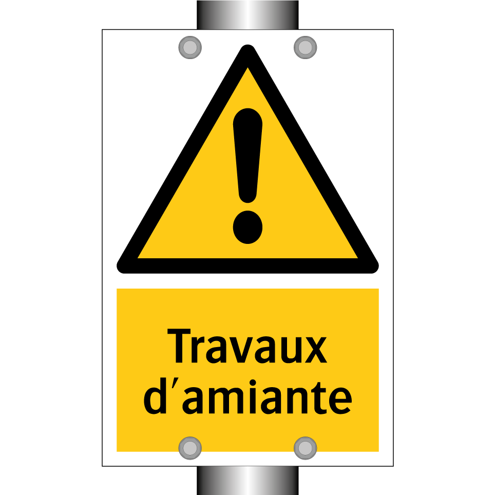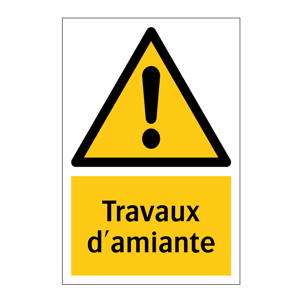Panneau d'avertissement avec le texte : "Travaux d'amiante"