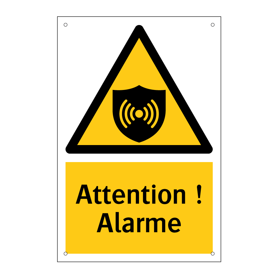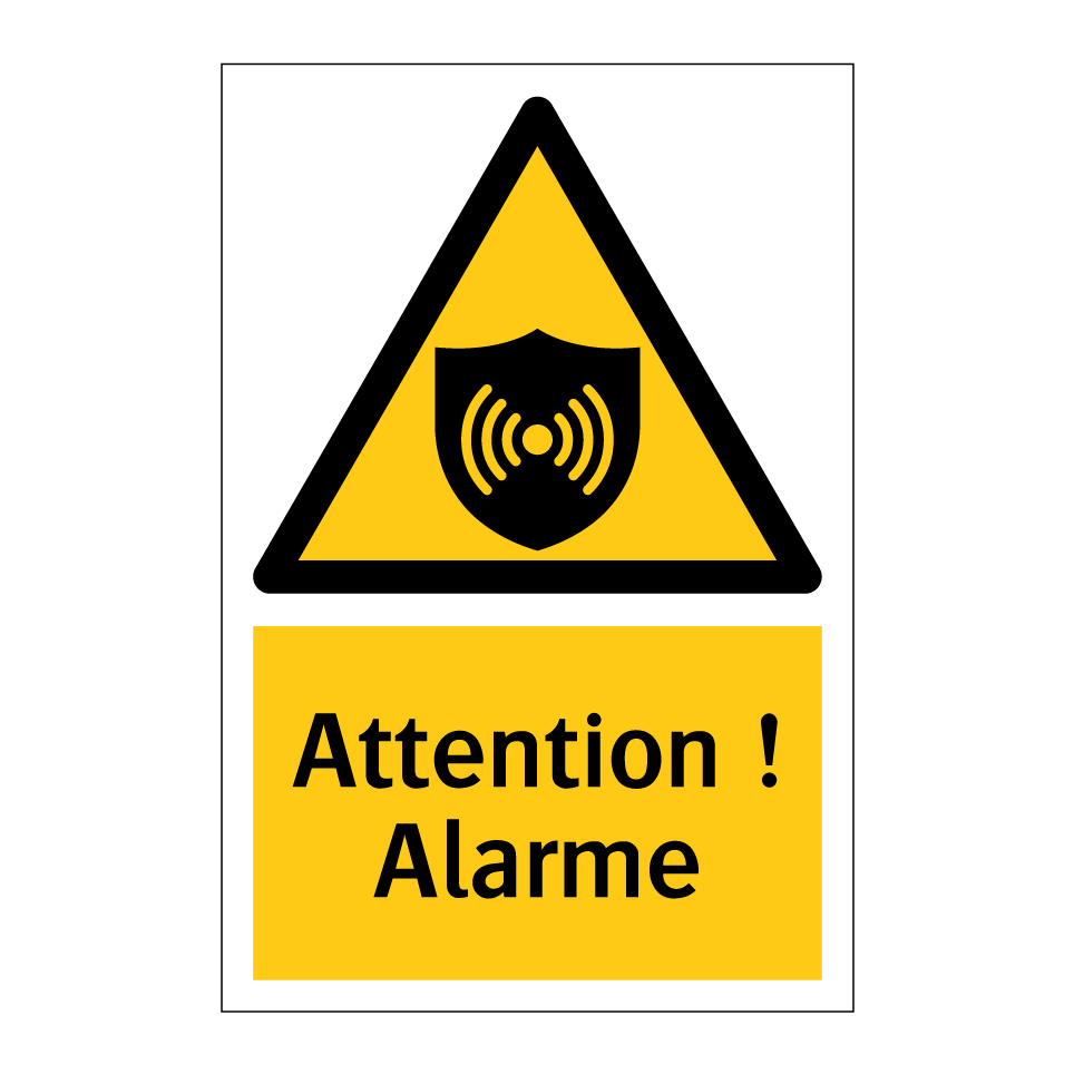 Panneau d'avertissement avec le texte : "Attention ! Alarme"