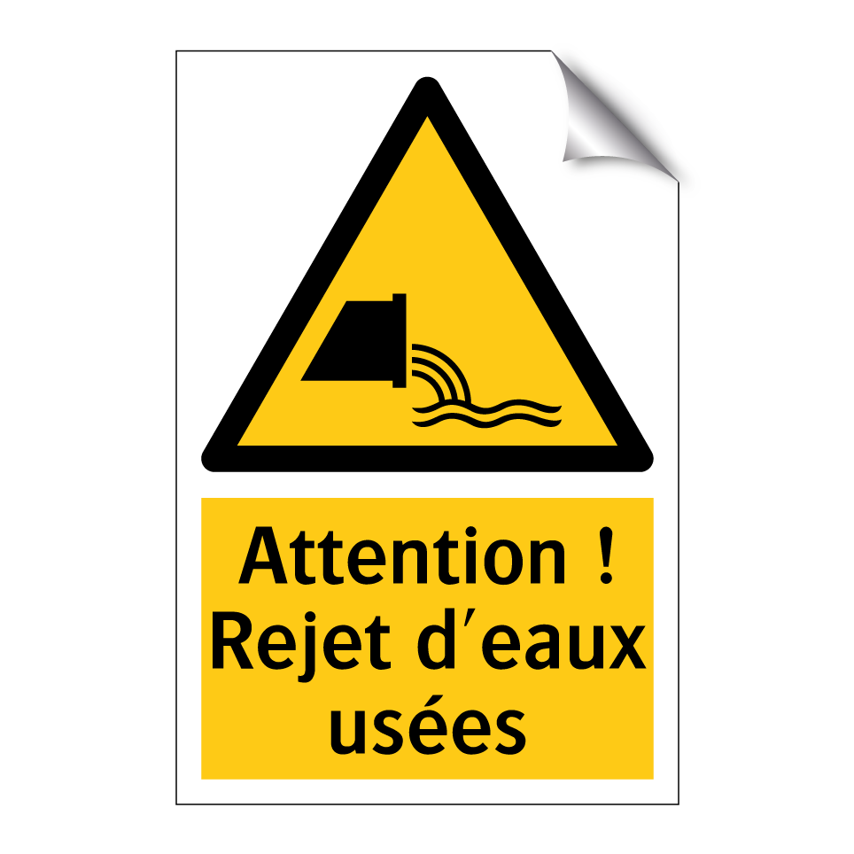 Panneau d'avertissement avec le texte : "Attention ! Rejet d'eaux usées"