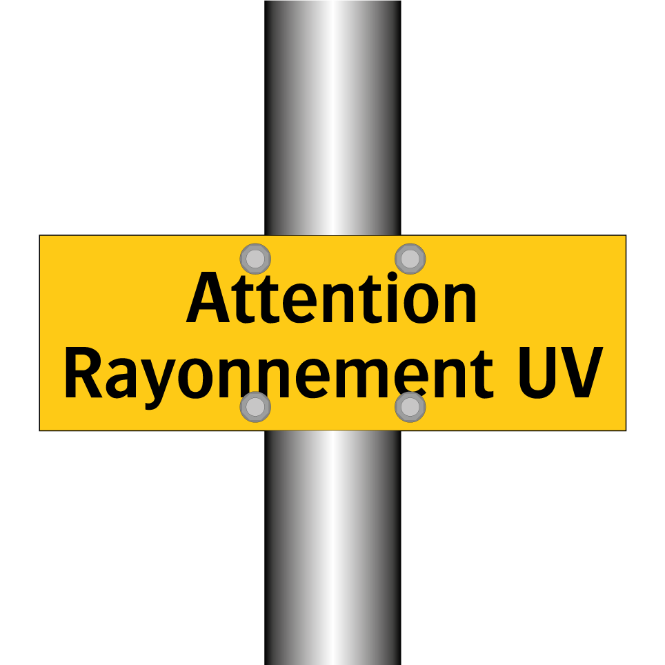 Panneau d'avertissement avec le texte : "Attention Rayonnement UV"