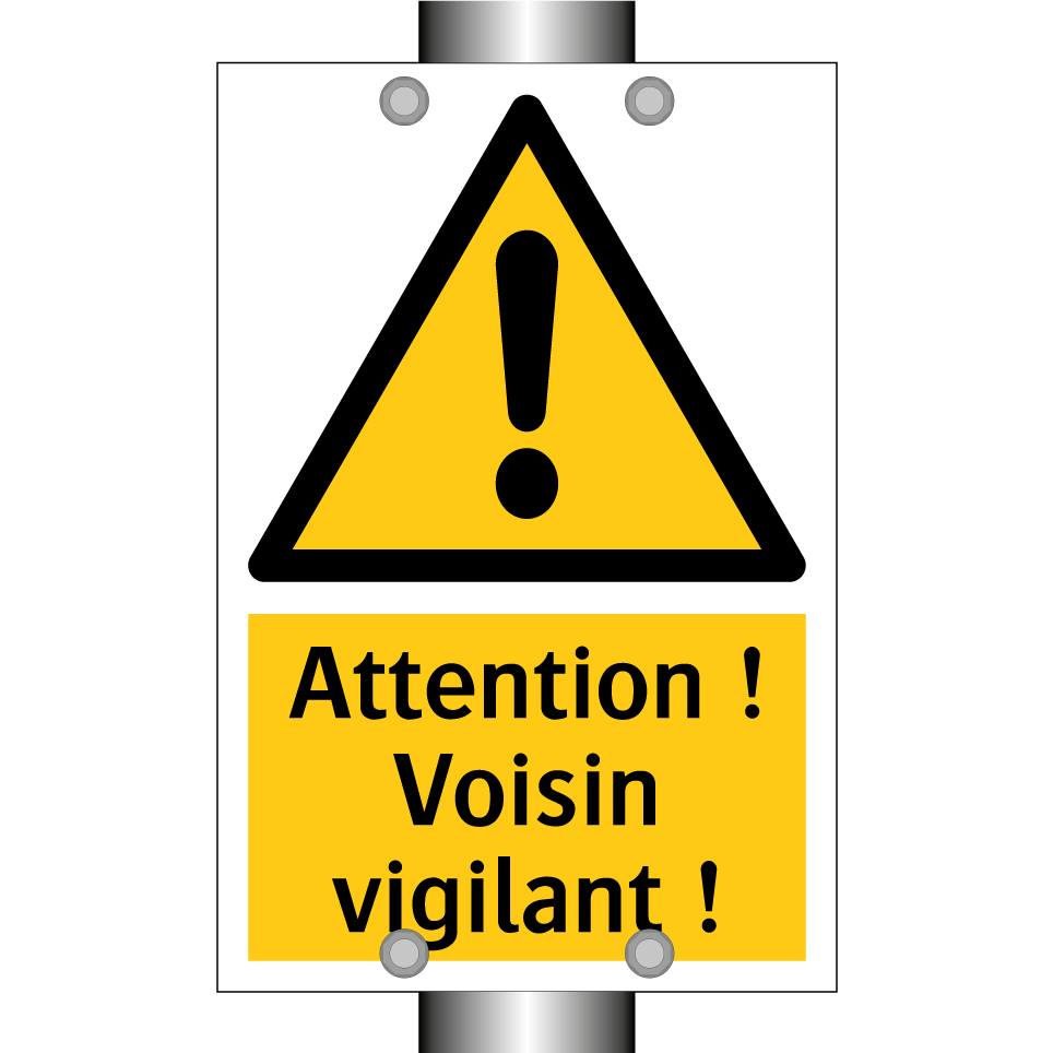 Panneau d'avertissement avec le texte : "Attention ! Voisin vigilant !"