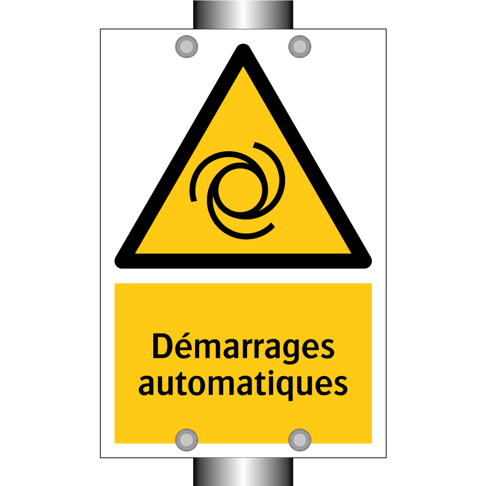 Panneau d'avertissement avec le texte : "Démarrages automatiques"