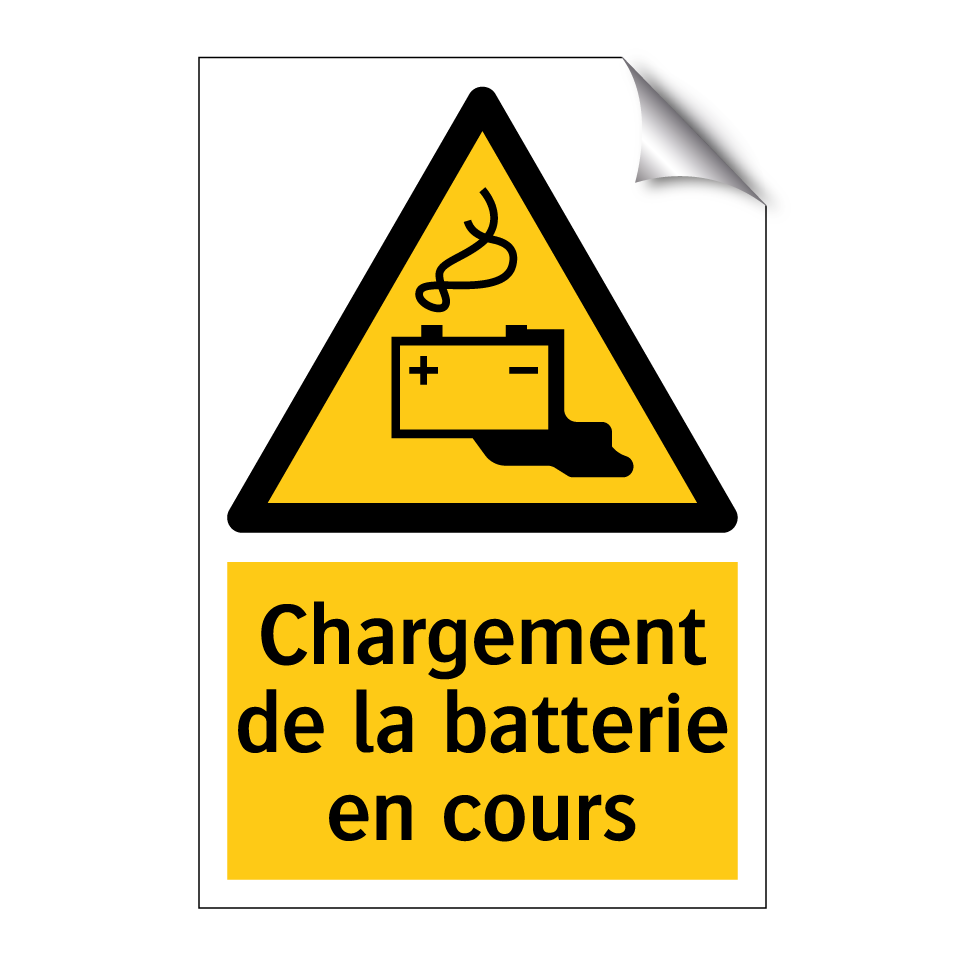 Panneau d'avertissement avec le texte : "Chargement de la batterie en cours"