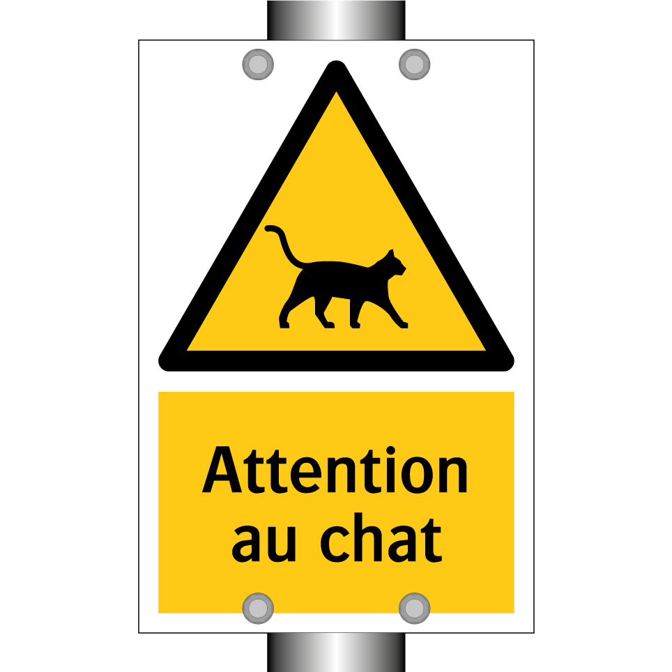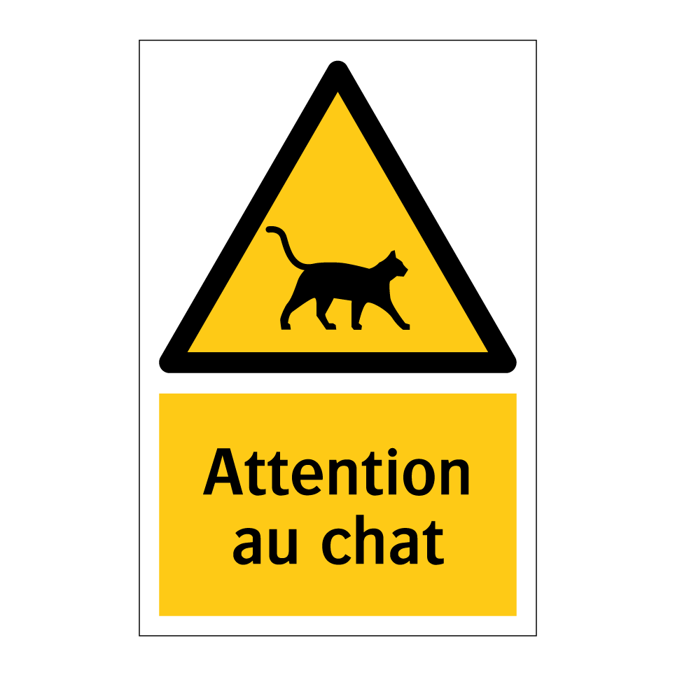 Panneau d'avertissement avec le texte : "Attention au chat"