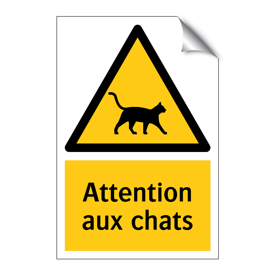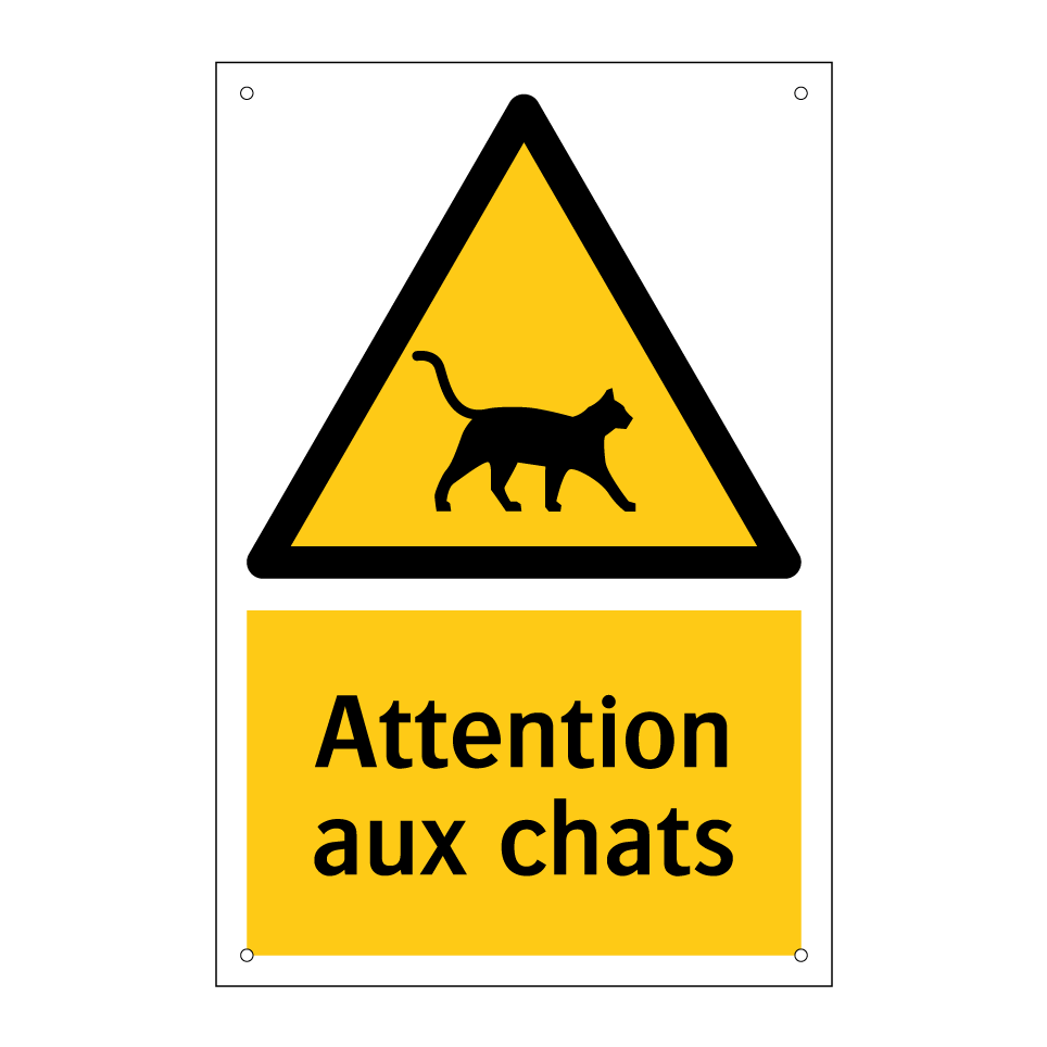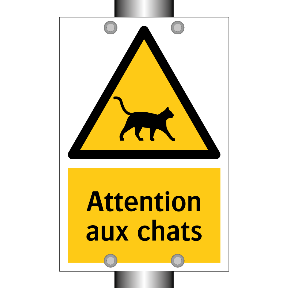 Panneau d'avertissement avec le texte : "Attention aux chats"
