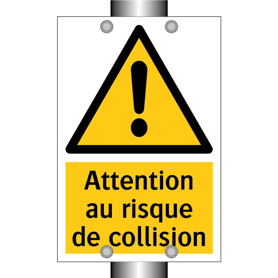 Panneau d'avertissement avec le texte : "Attention au risque de collision"