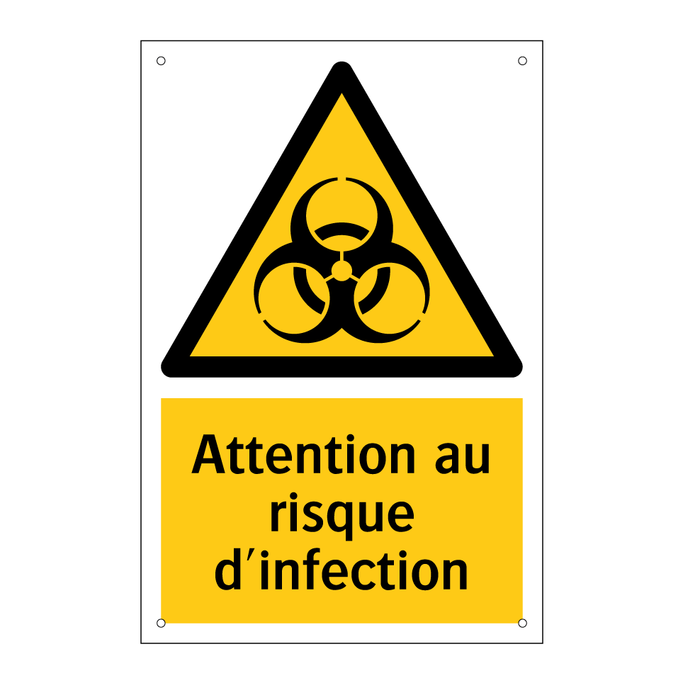 Panneau d'avertissement avec le texte : "Attention au risque d'infection"
