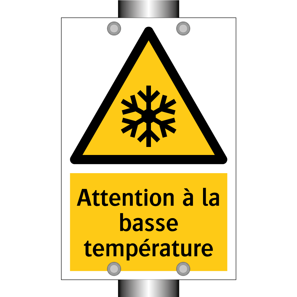 Panneau d'avertissement avec le texte : "Attention à la basse température"