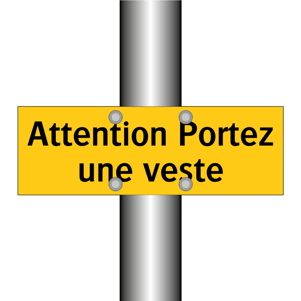 Panneau d'avertissement avec le texte : "Attention Portez une veste"