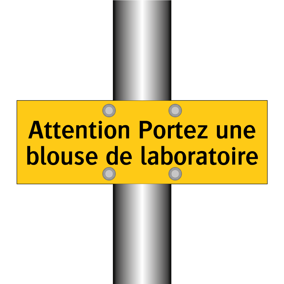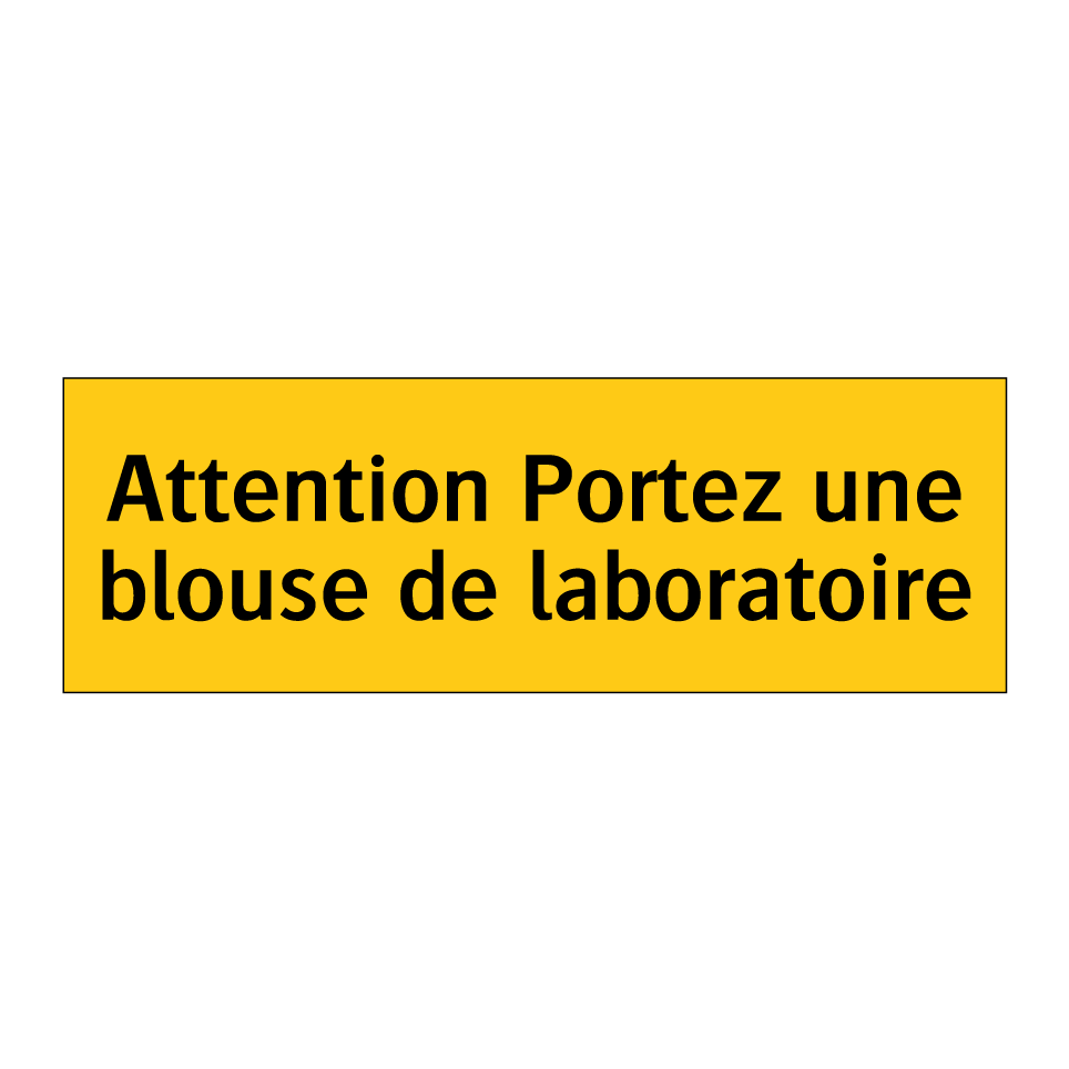Panneau d'avertissement avec le texte : "Attention Portez une blouse de laboratoire"
