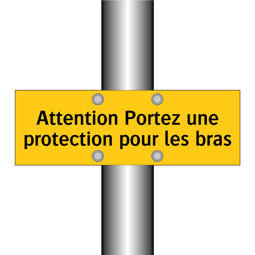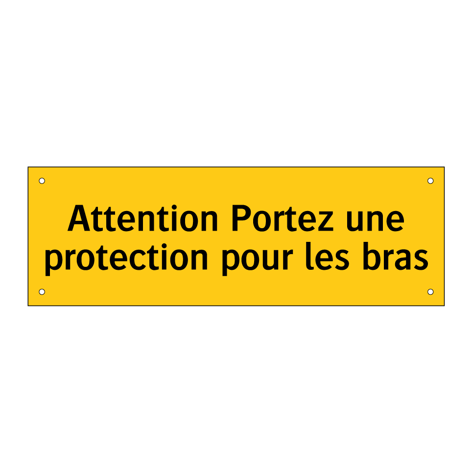 Panneau d'avertissement avec le texte : "Attention Portez une protection pour les bras"