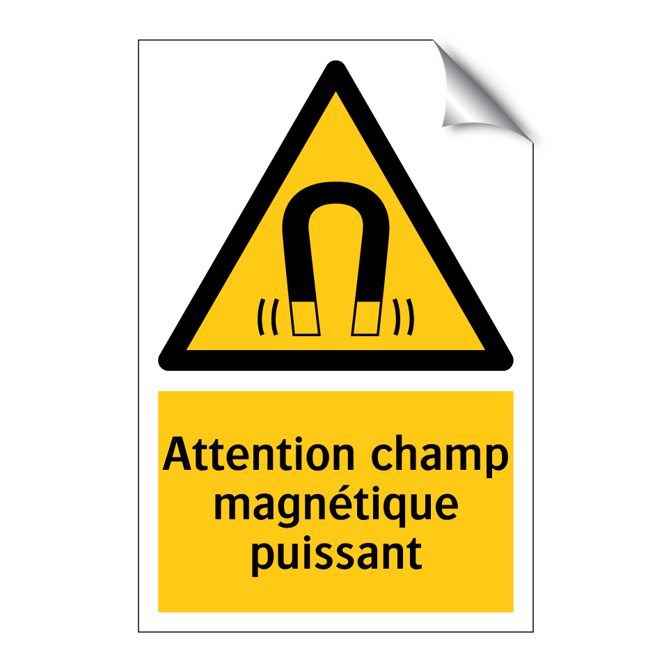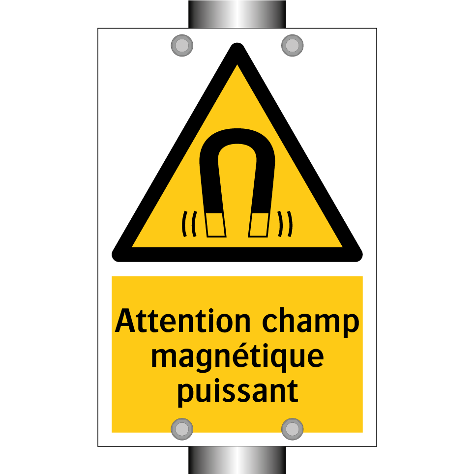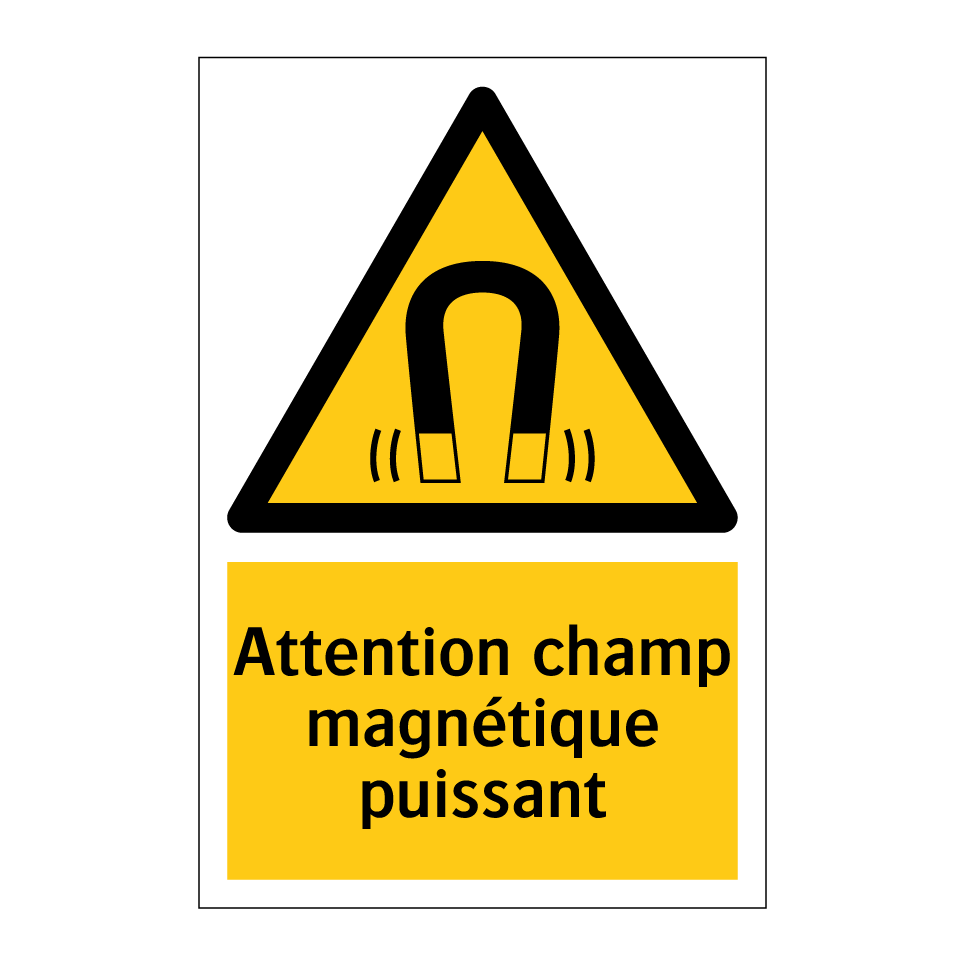 Panneau d'avertissement avec le texte : "Attention champ magnétique puissant"