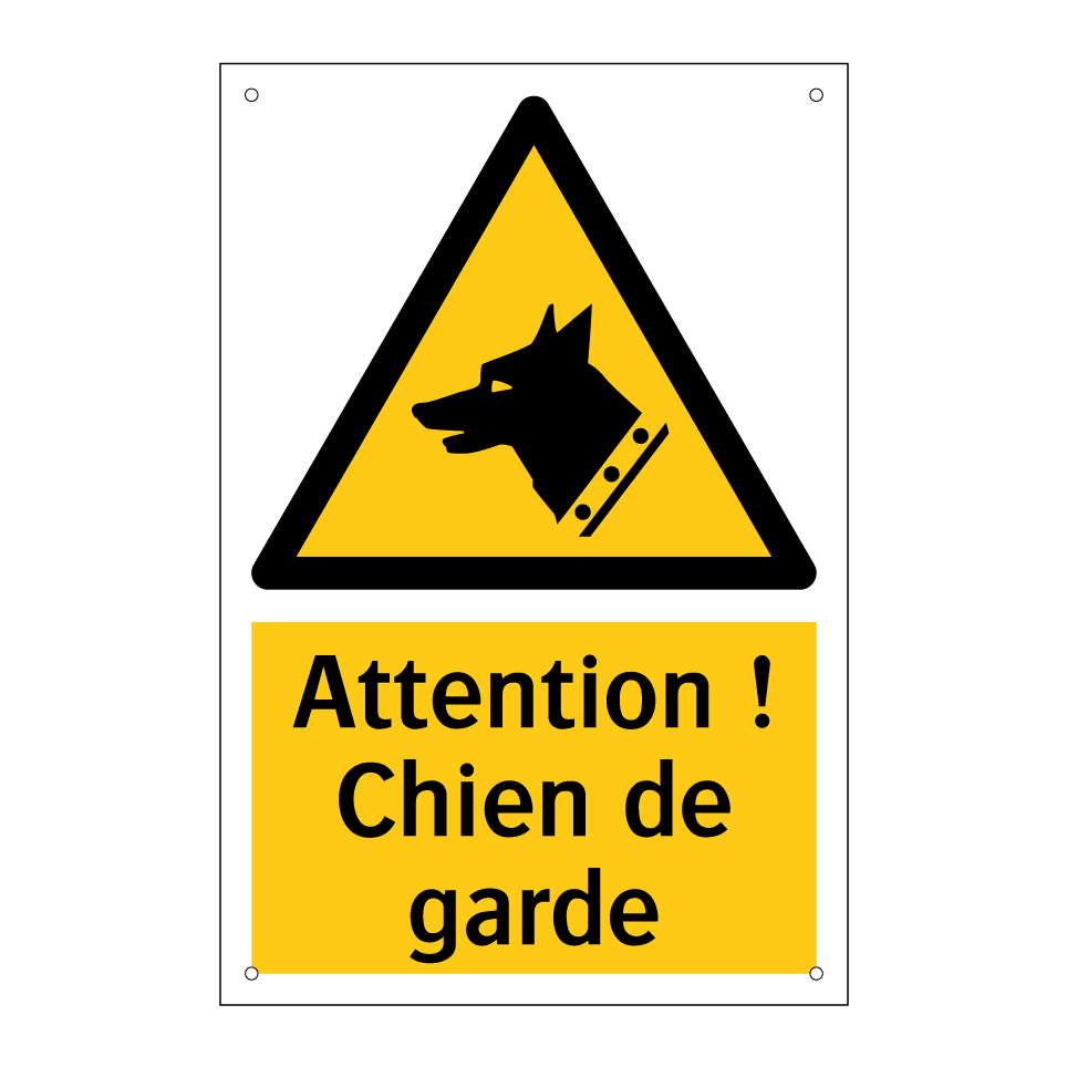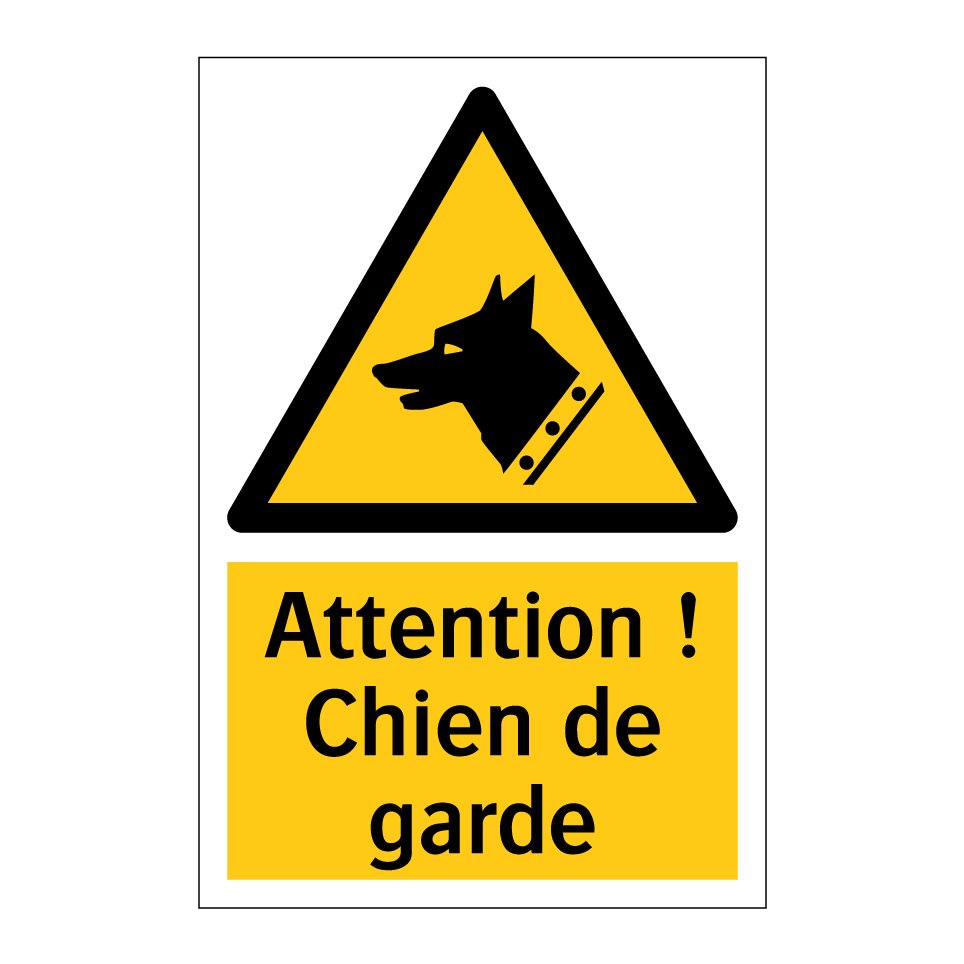 Panneau d'avertissement avec le texte : "Attention ! Chien de garde"