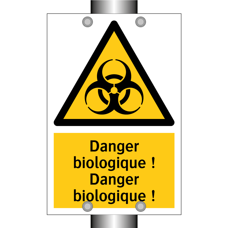 Panneau d'avertissement avec le texte : "Danger biologique ! Danger biologique !"