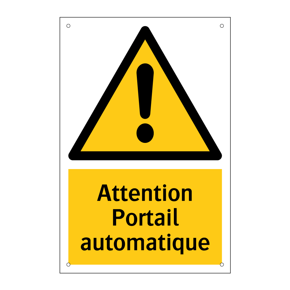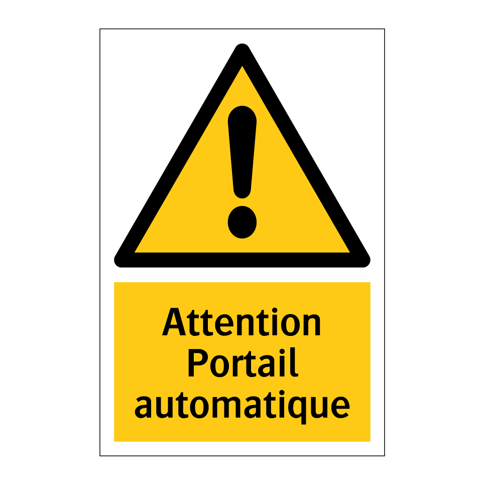 Panneau d'avertissement avec le texte : "Attention Portail automatique"