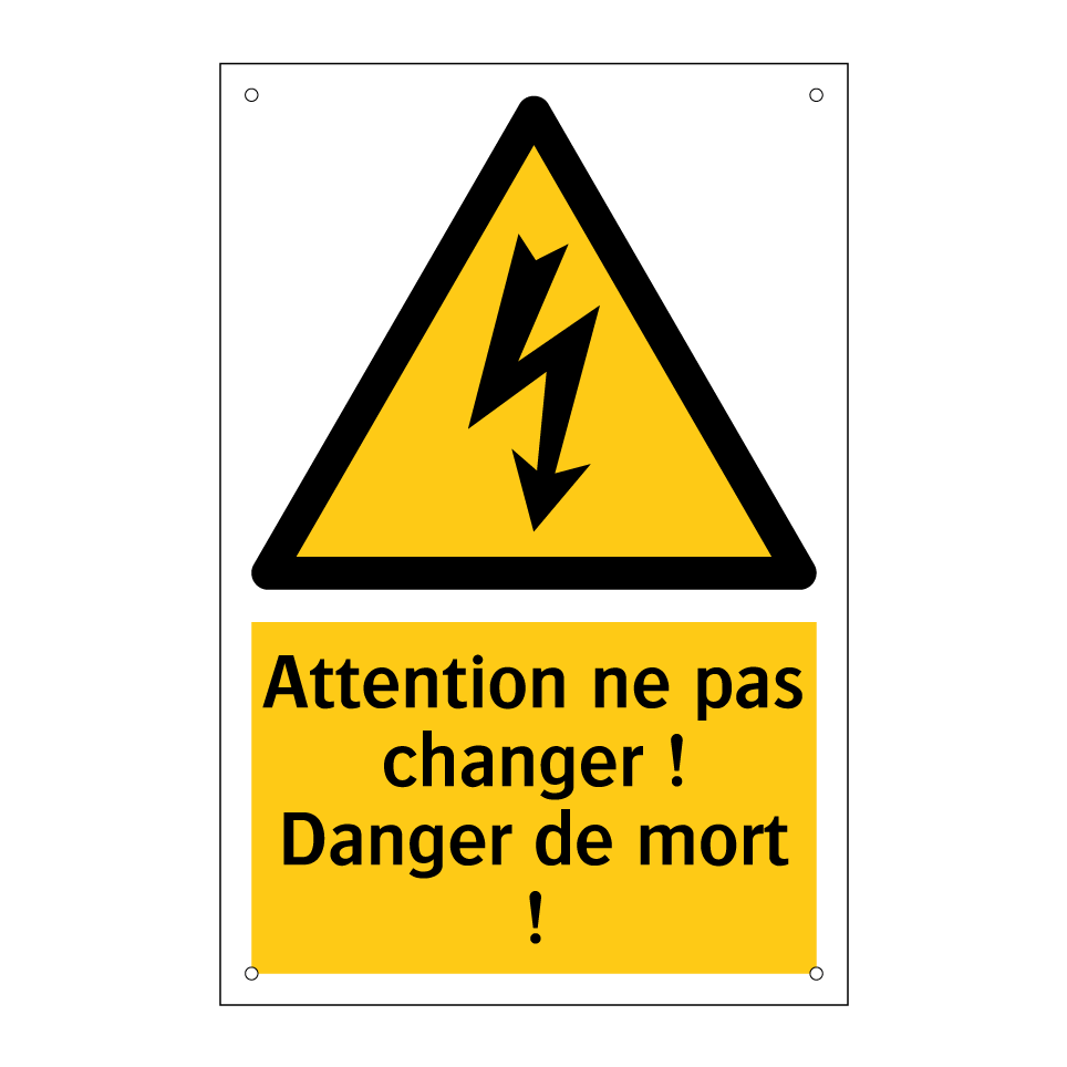 Panneau d'avertissement avec le texte : "Attention ne pas changer ! Danger de mort !"