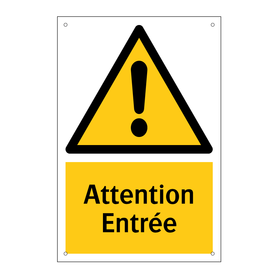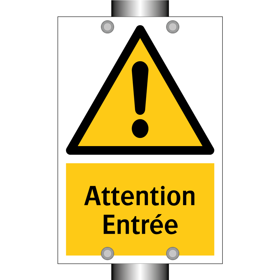 Panneau d'avertissement avec le texte : "Attention Entrée"