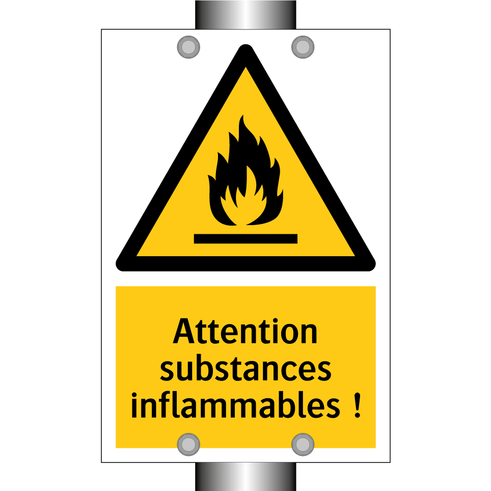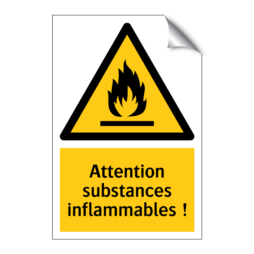 Panneau d'avertissement avec le texte : "Attention substances inflammables !"