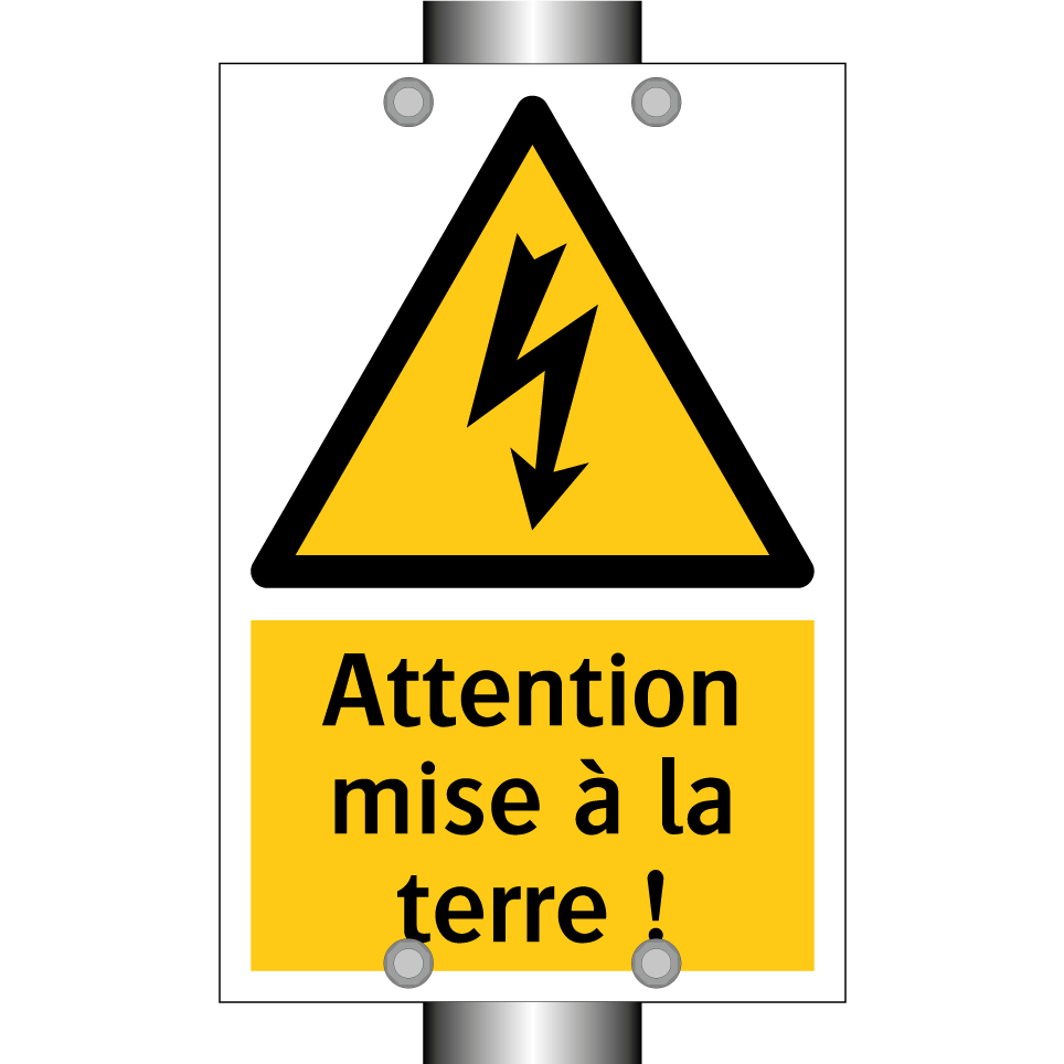 Panneau d'avertissement avec le texte : "Attention mise à la terre !"