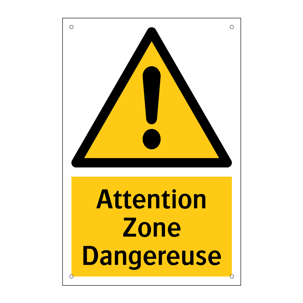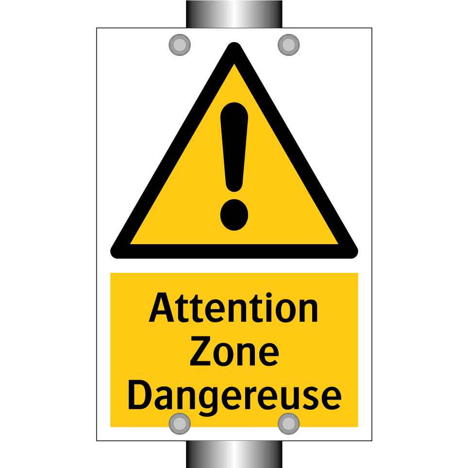 Panneau d'avertissement avec le texte : "Attention Zone Dangereuse"