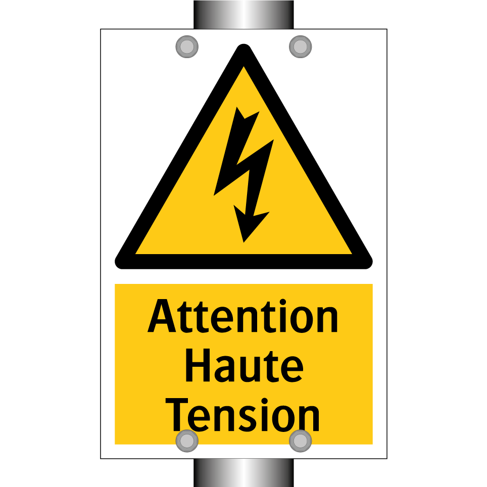 Panneau d'avertissement avec le texte : "Attention Haute Tension"