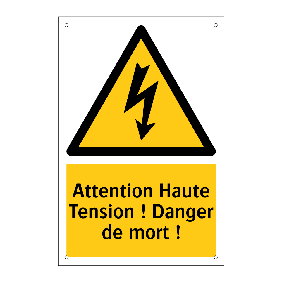 Panneau d'avertissement avec le texte : "Attention Haute Tension ! Danger de mort !"