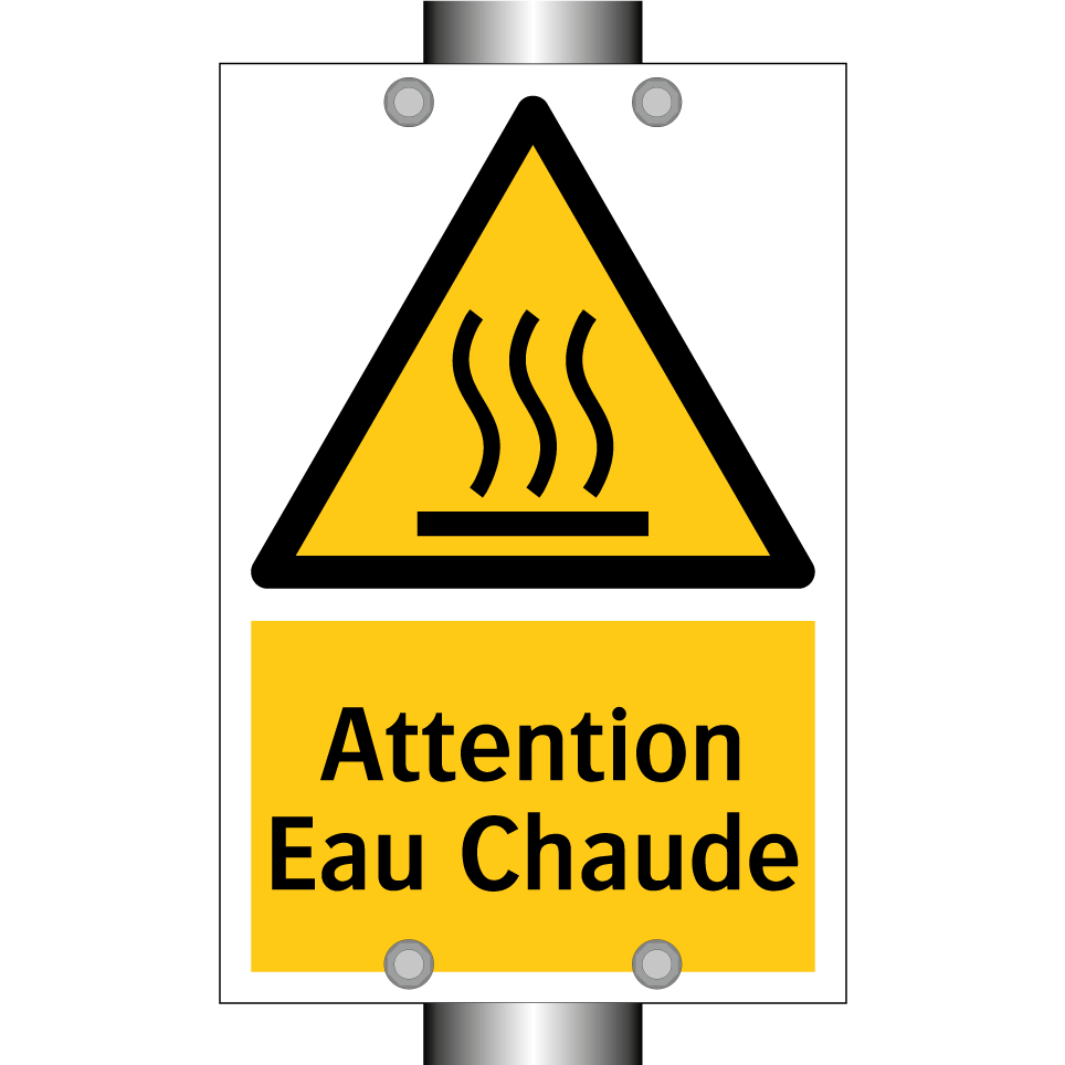 Panneau d'avertissement avec le texte : "Attention Eau Chaude"