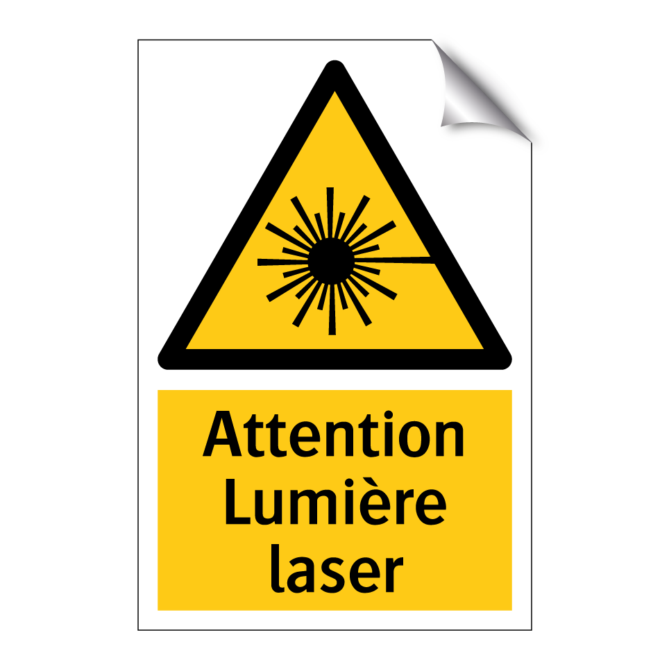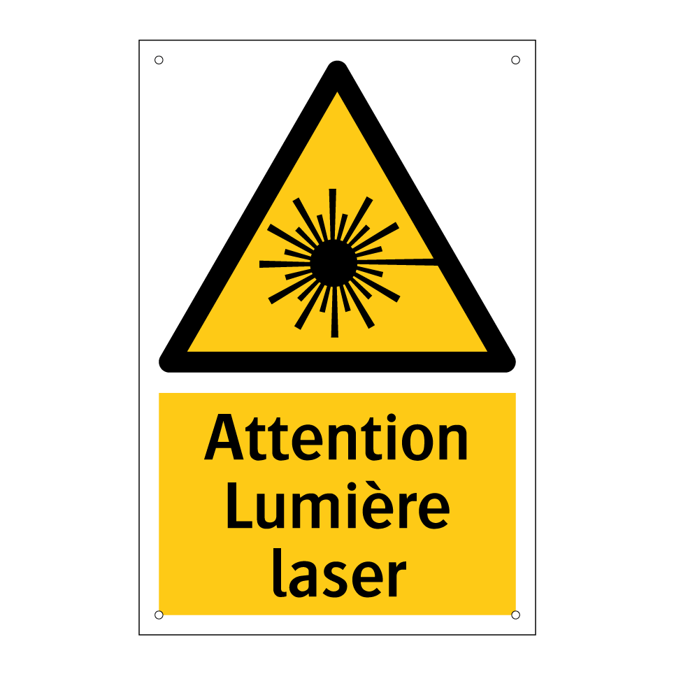 Panneau d'avertissement avec le texte : "Attention Lumière laser"