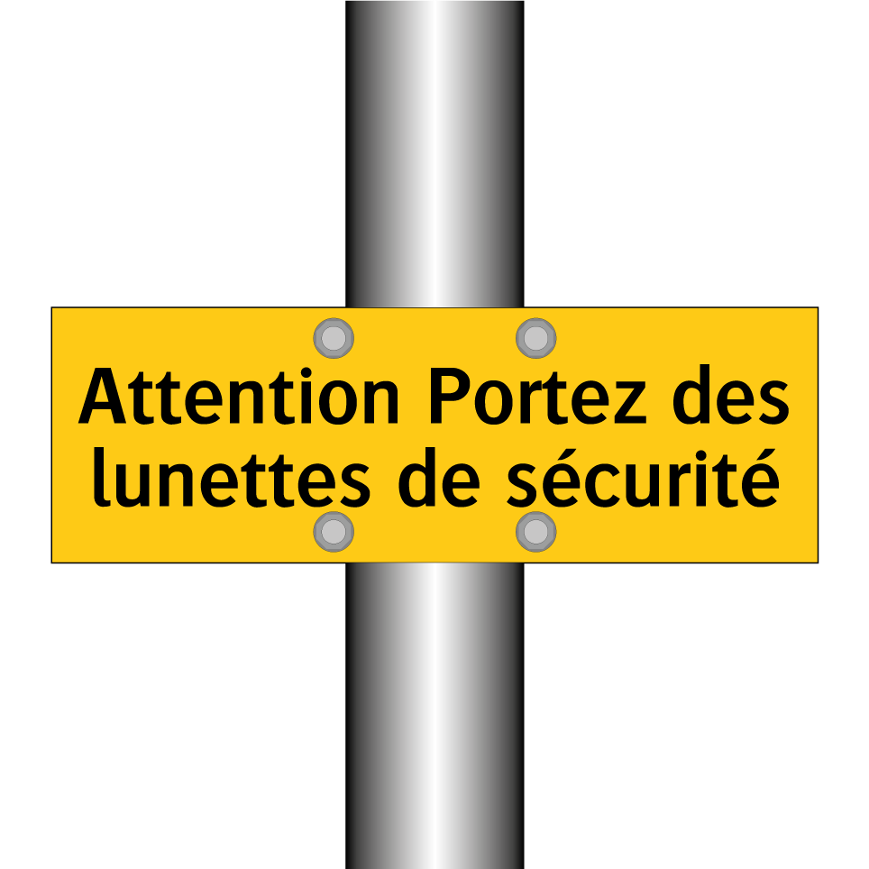 Panneau d'avertissement avec le texte : "Attention Portez des lunettes de sécurité"