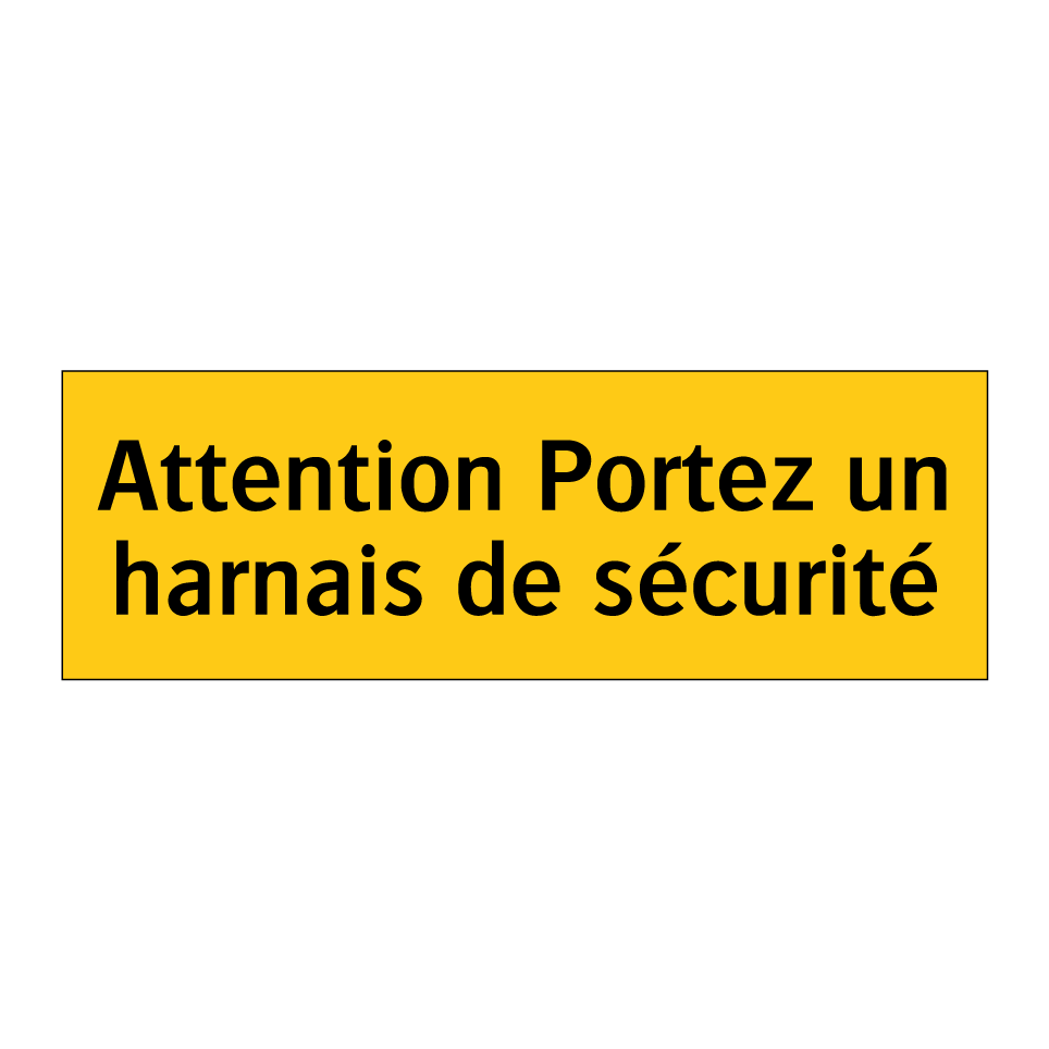 Panneau d'avertissement avec le texte : "Attention Portez un harnais de sécurité"
