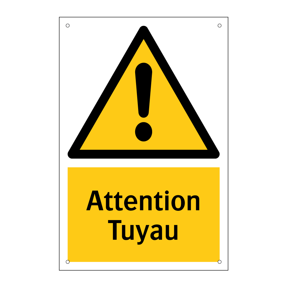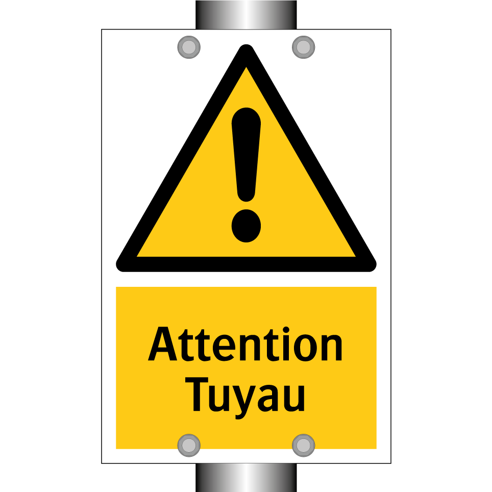 Panneau d'avertissement avec le texte : "Attention Tuyau"