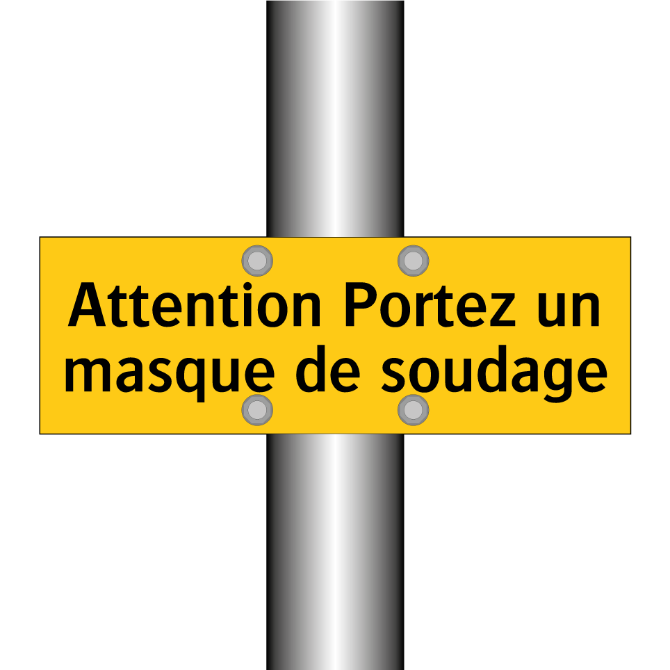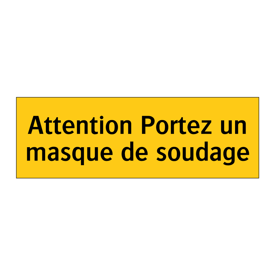 Panneau d'avertissement avec le texte : "Attention Portez un masque de soudage"