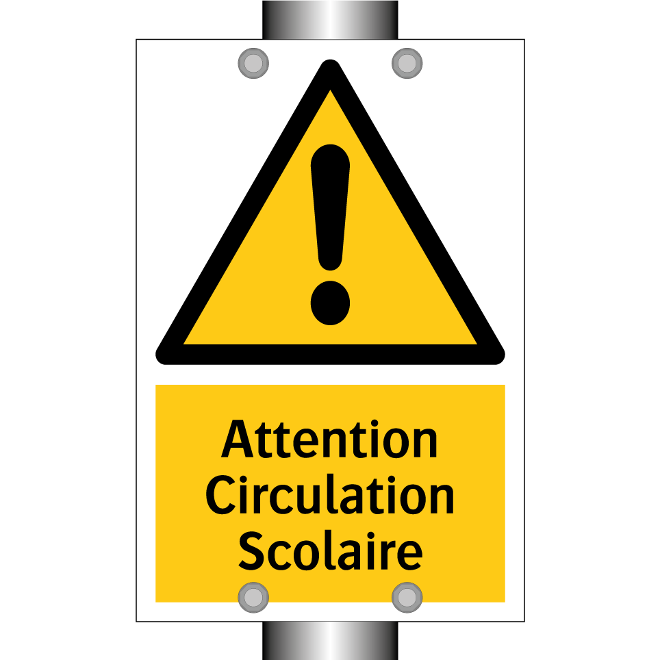 Panneau d'avertissement avec le texte : "Attention Circulation Scolaire"