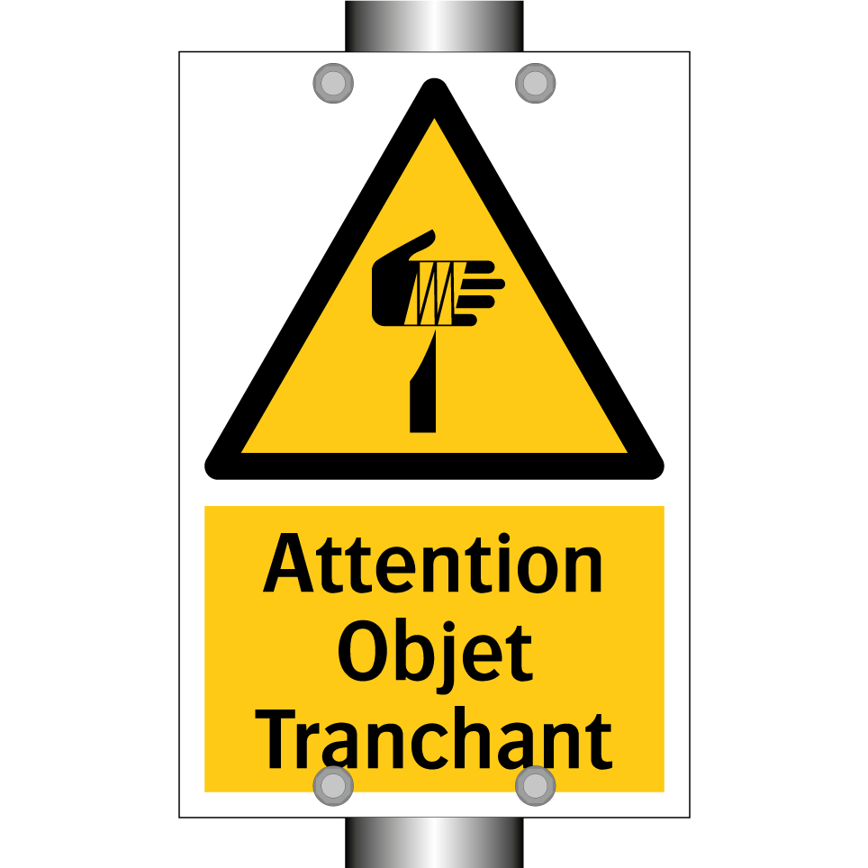 Panneau d'avertissement avec le texte : "Attention Objet Tranchant"