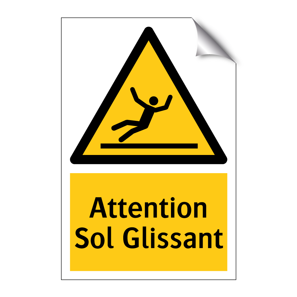 Panneau d'avertissement avec le texte : "Attention Sol Glissant"