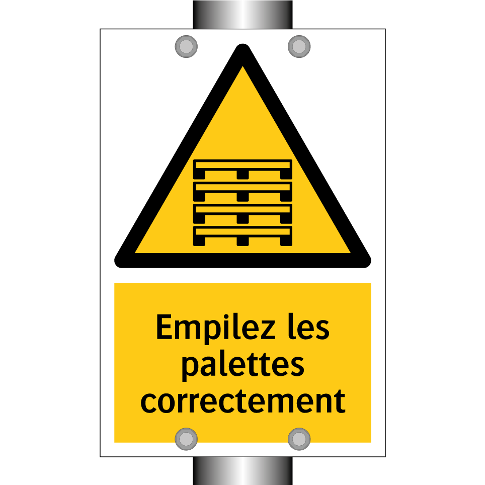 Panneau d'avertissement avec le texte : "Empilez les palettes correctement"