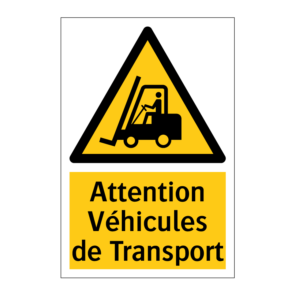 Panneau d'avertissement avec le texte : "Attention Véhicules de Transport"
