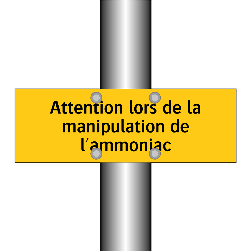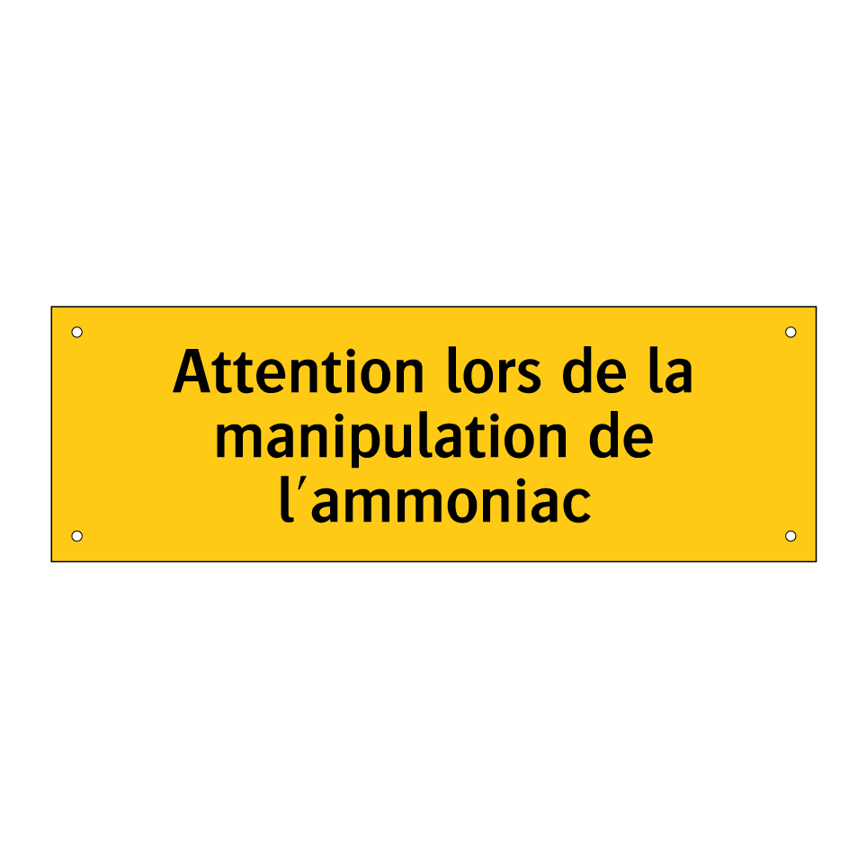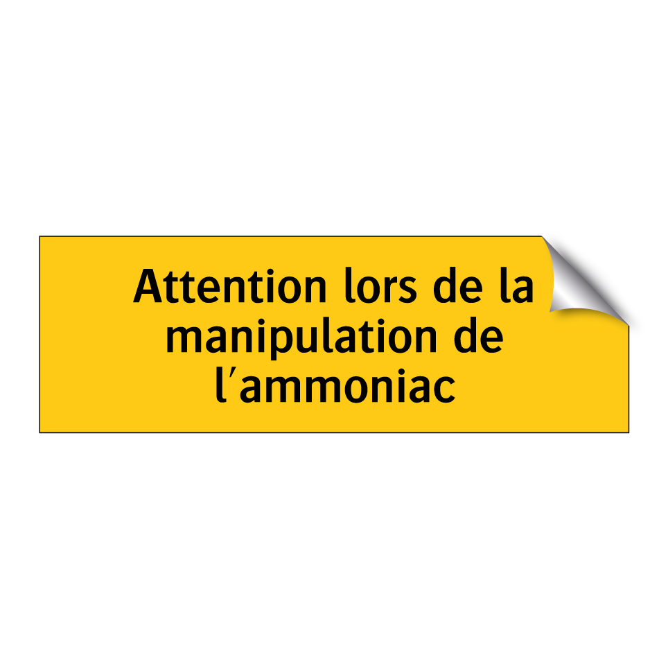Panneau d'avertissement avec le texte : "Attention lors de la manipulation de l'ammoniac"