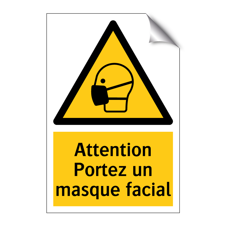 Panneau d'avertissement avec le texte : "Attention Portez un masque facial"