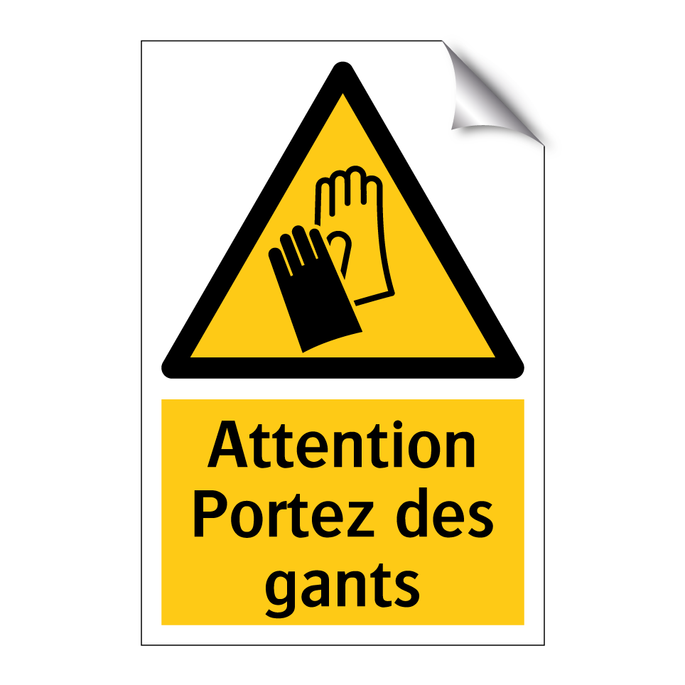 Panneau d'avertissement avec le texte : "Attention Portez des gants"