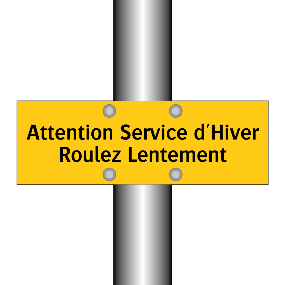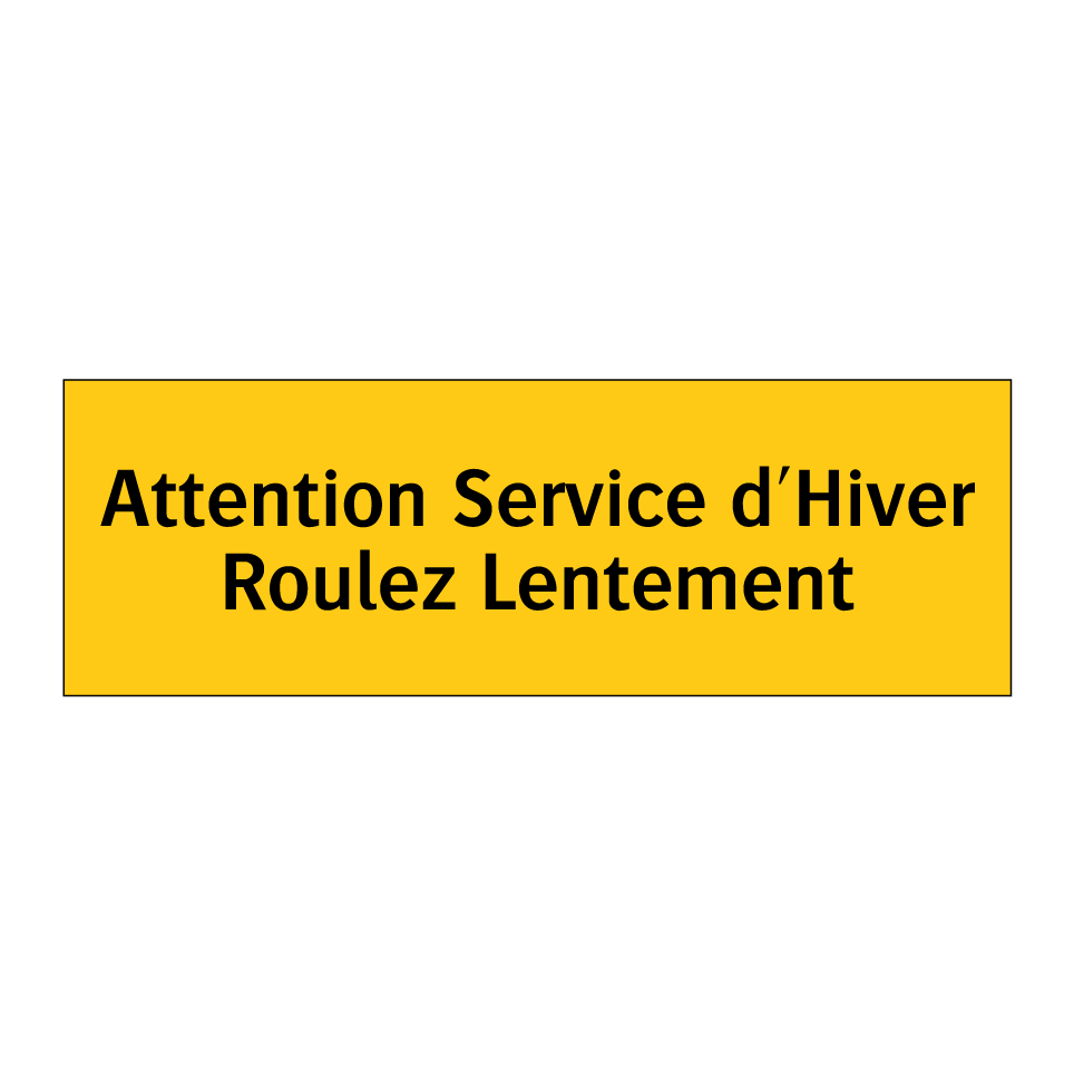 Panneau d'avertissement avec le texte : "Attention Service d'Hiver Roulez Lentement"