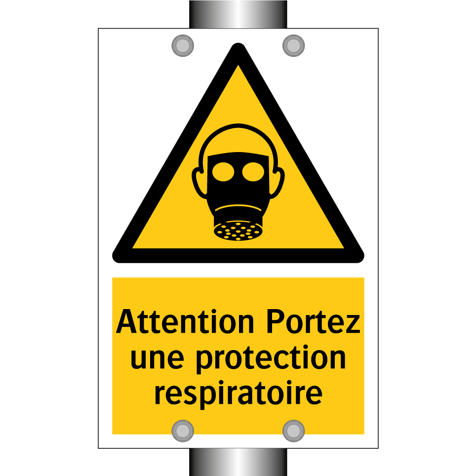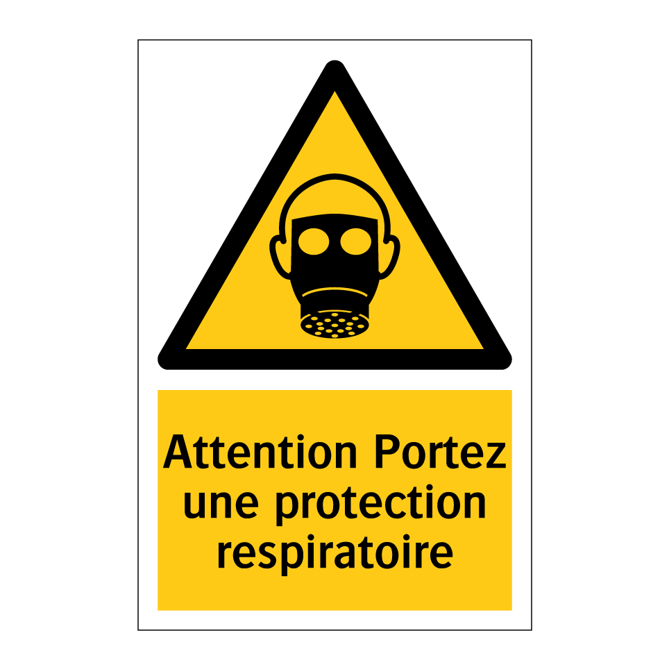 Panneau d'avertissement avec le texte : "Attention Portez une protection respiratoire"