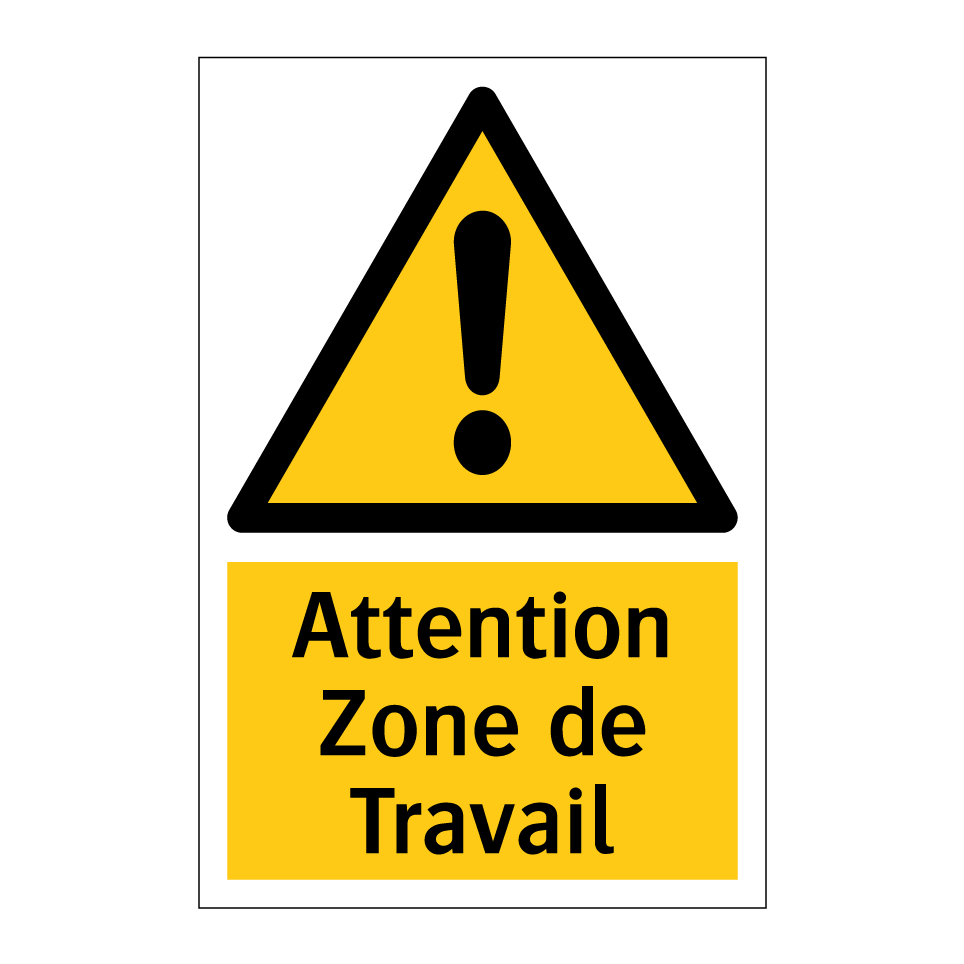 Panneau d'avertissement avec le texte : "Attention Zone de Travail"