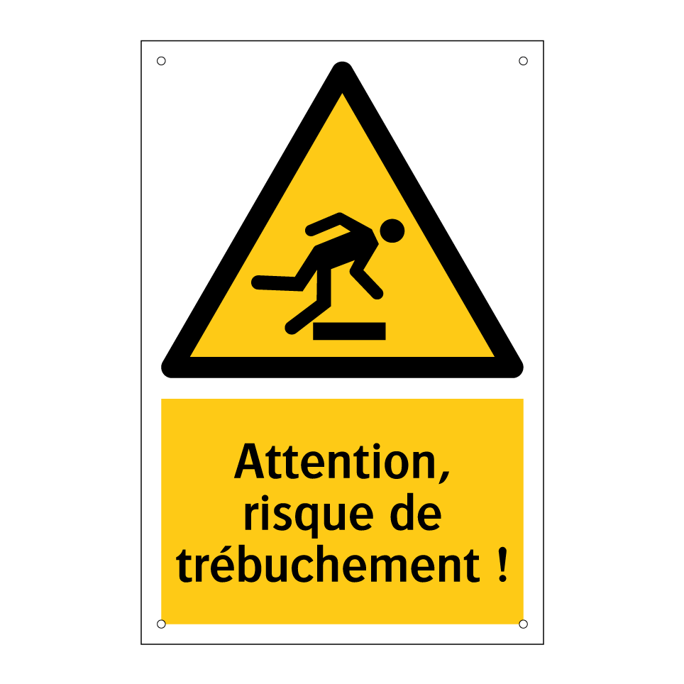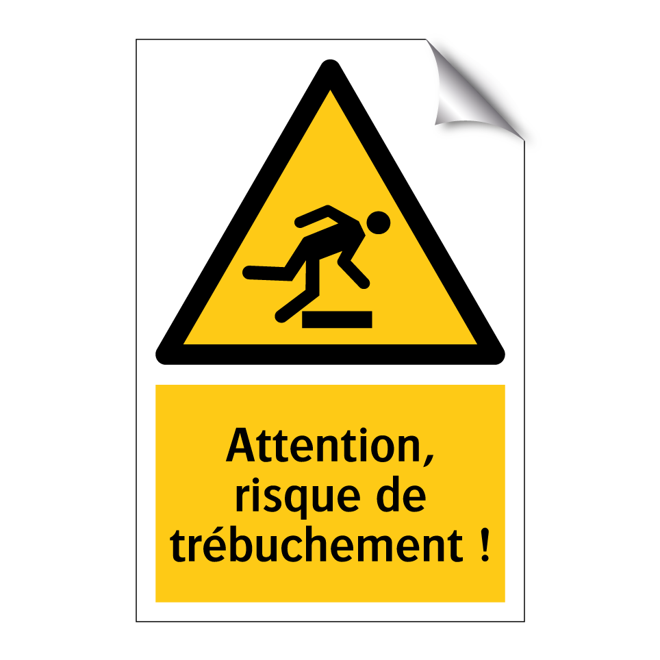 Panneau d'avertissement avec le texte : "Attention, risque de trébuchement !"