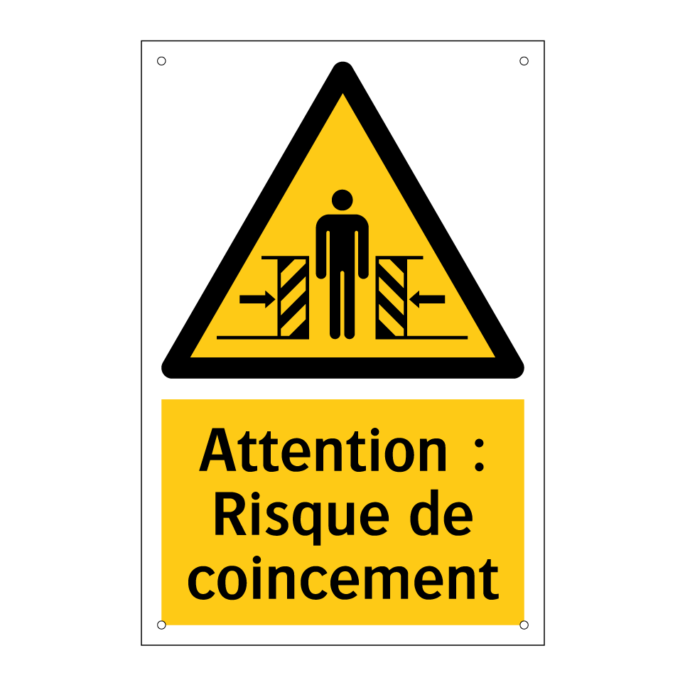 Panneau d'avertissement avec le texte : "Attention : Risque de coincement"