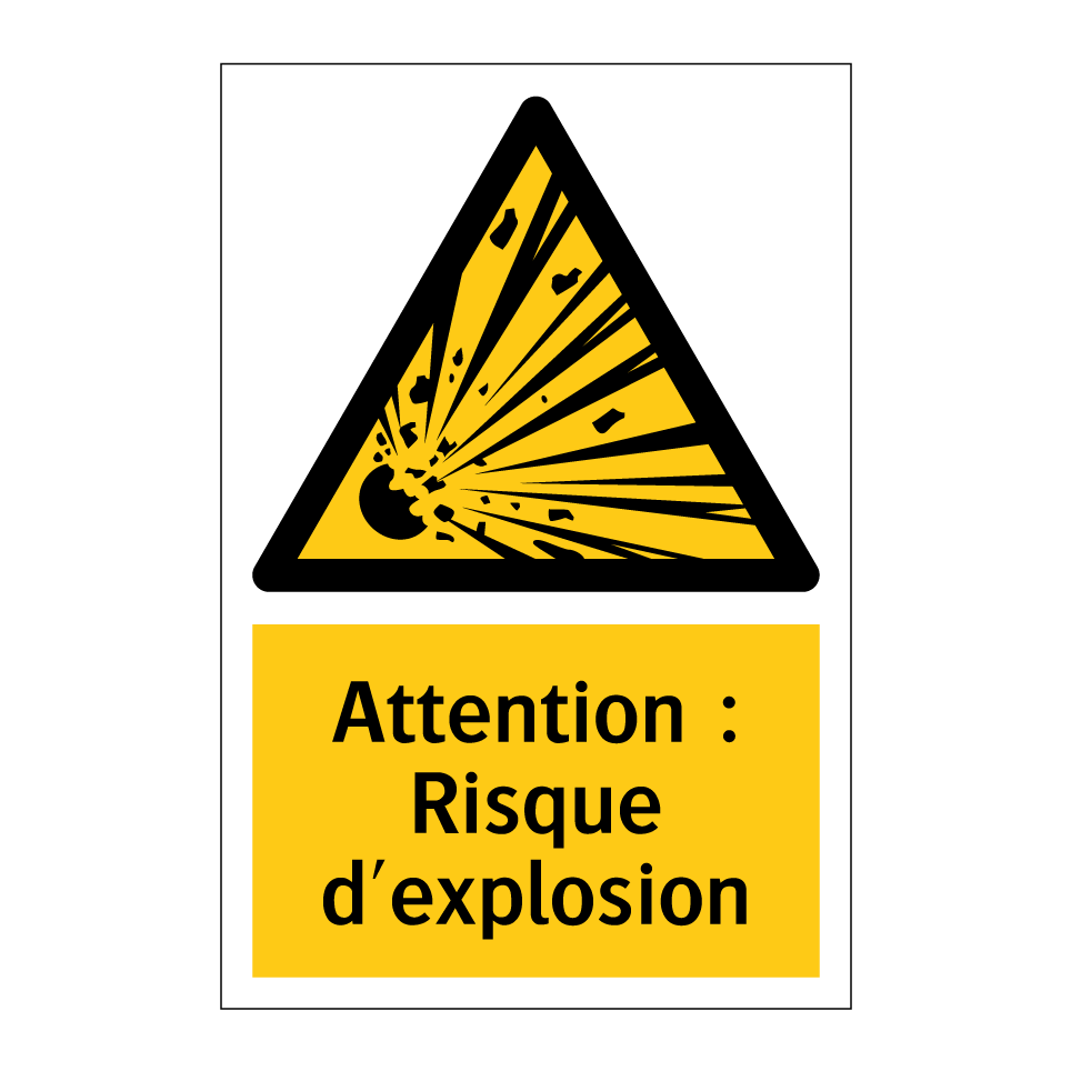 Panneau d'avertissement avec le texte : "Attention : Risque d'explosion"
