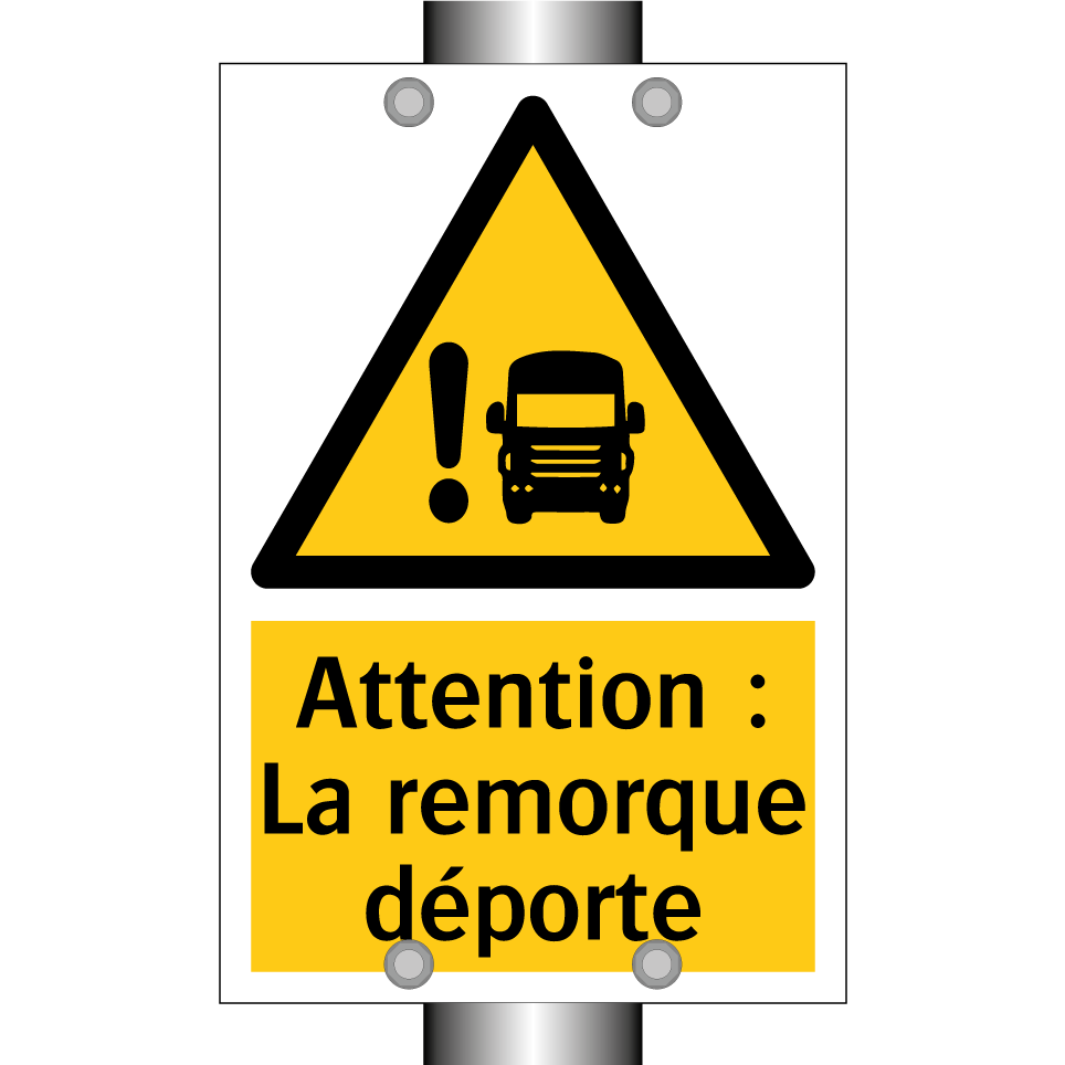 Panneau d'avertissement avec le texte : "Attention : La remorque déporte"