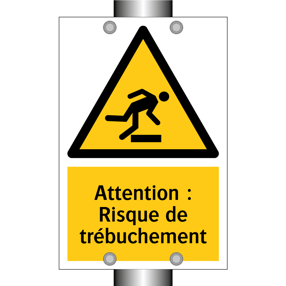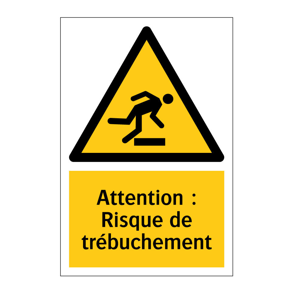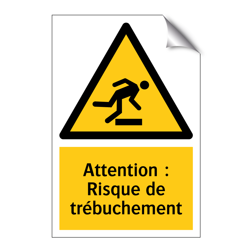 Panneau d'avertissement avec le texte : "Attention : Risque de trébuchement"