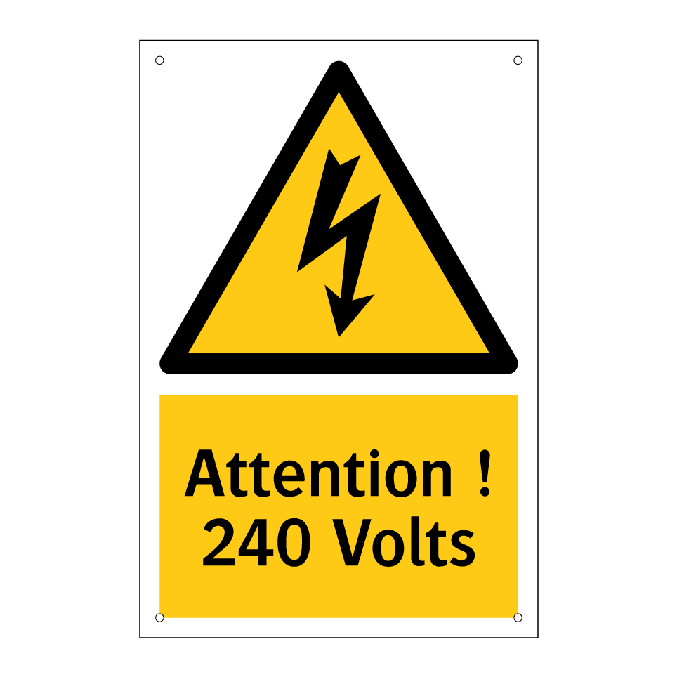 Panneau d'avertissement avec le texte : "Attention ! 240 Volts"